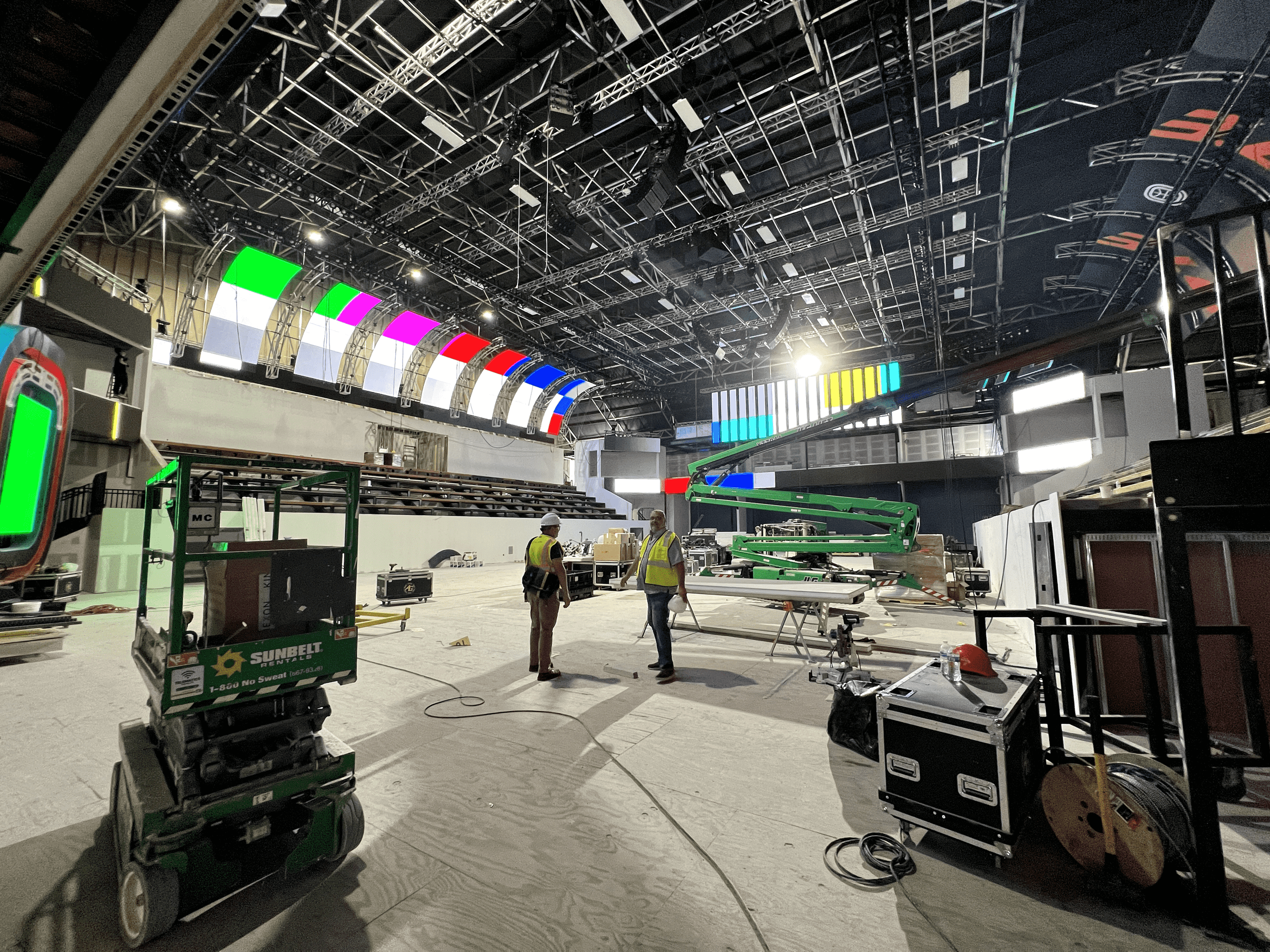 To capture the content, Clark implemented three (3) Sony 3100 cameras with Fujinon XA55 box lenses and three (3) Sony FX9 for roaming cameras utilizing Wave Central for wireless video transmission. For the commentator booth, Clark implemented two (2) Panasonic UE-150. For aerial shots, Clark implemented a Defy Live Cable Cam with an EX250 head. In season two, OTE implemented a referee camera, the “Vibe Cam” to capture additional in-game action and get sideline interviews when play stopped.